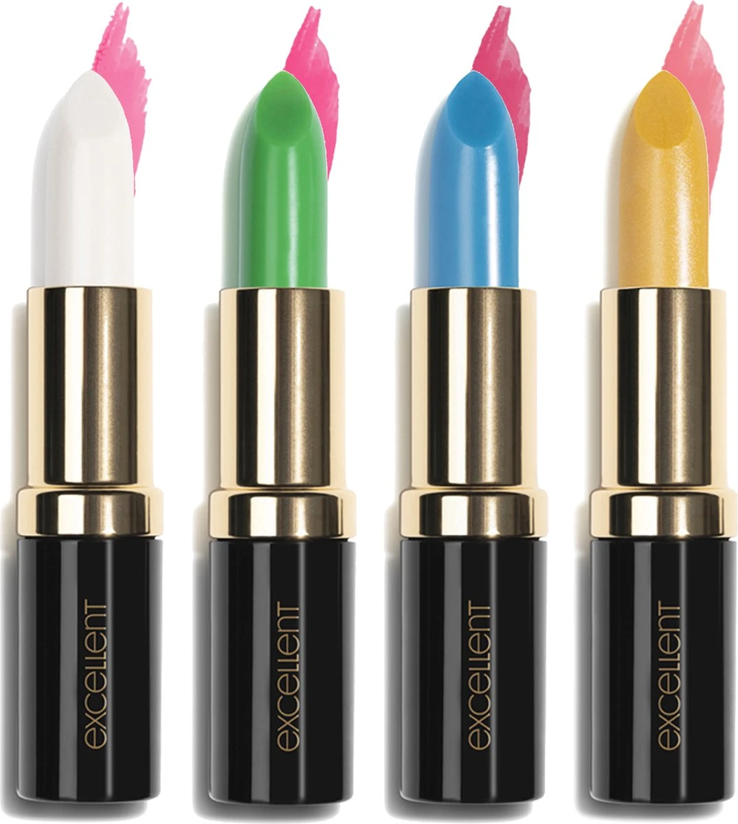 Wit = fris roze, Groen = warm cyclaam, Blauw = stralend fuchsia, Geel = zalmroze